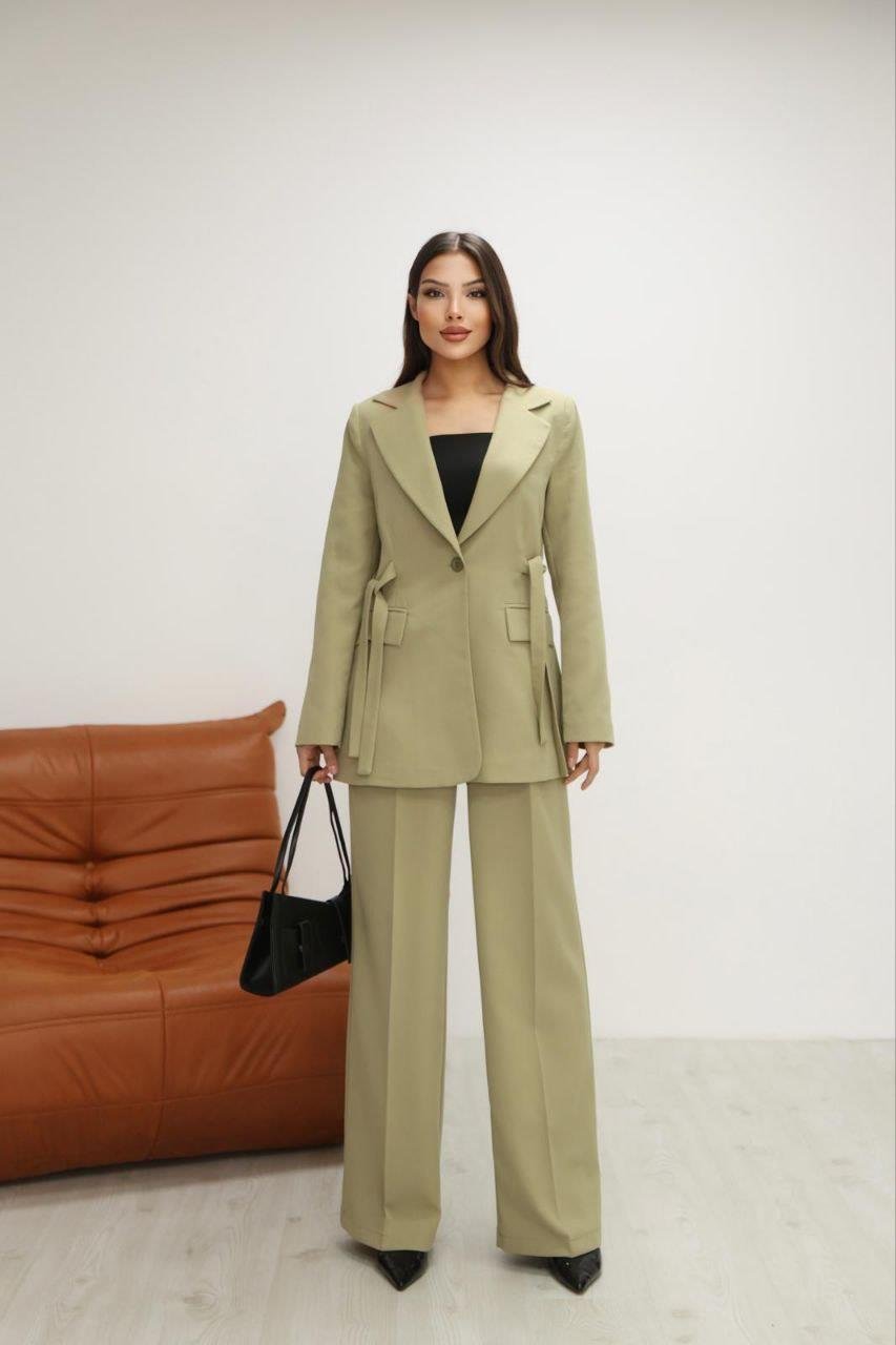 - 2'li takım halinde gelen bu set, hem ceket hem de bol paça palazzo pantolonu içerir